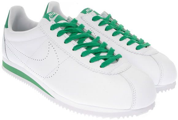 We saw Nike retro several vintage Nike Cortez colorways this past year, and here we feature another old skool model which has recently released. This particular version has been dubbed the Lucky Green, and feature a predominantly white leather upper along with green accents, as well as a perforated Nike swoosh. Look for them now at select Nike accounts.